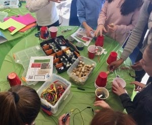 Students from twenty-five schools across the province (even one team from BC) all zealously converged on Laval Senior Academy High School to participate in a massive bilingual event where passion, creativity, and scientific thought were STEAM-ing from the bots. Our host school topped off the experience by inviting LEARN to run a pop-up Makerspace in the library where hundreds of elementary school students were given the opportunity to explore circuits, to make animations, “spinart”, robotics, programming, and so much more. Their engagement and excitement spurred on active thinking and above all, fun! Students used everyday items to produce musical notes (think Tom Hanks Big 1988), while others generated beautiful art patterns using coloured pens, cups, corks, electric motors, and their imagination.