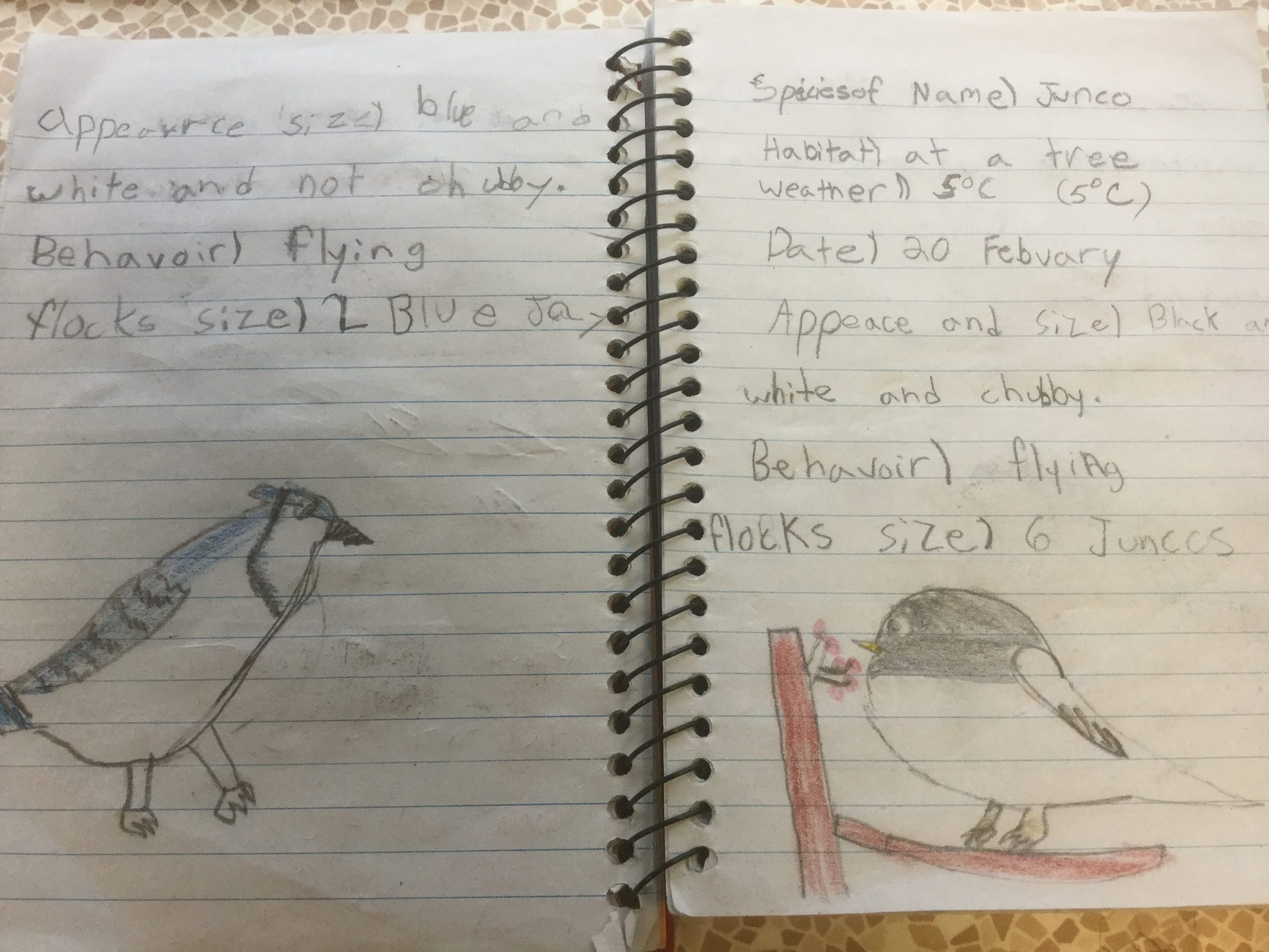 Over time, most kids used binoculars at home and had bird feeders installed in their backyards. Using the journal wasn’t seen as a homework assignment, but something fun they could do. “They all started to draw these amazing pictures and keeping track of the birds they were seeing. They were so naturally curious, they started learning all the bird names on their own”.