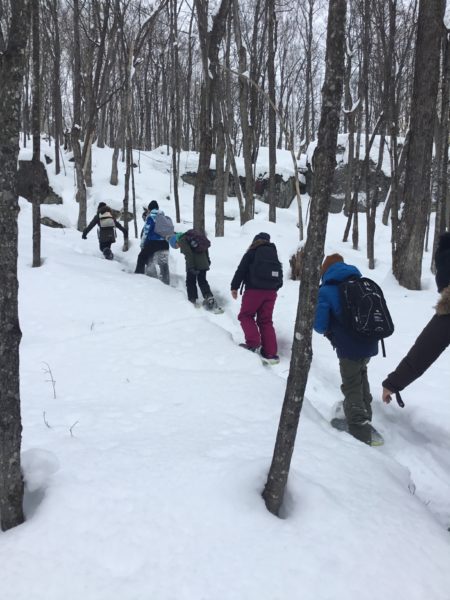 Students were generating questions which teachers usually try to elicit in the traditional classroom. Students were noticing, testing, and wondering about the features of their snowshoes – it was time to seize the moment and go with this engaged group on a different outdoor learning adventure!
